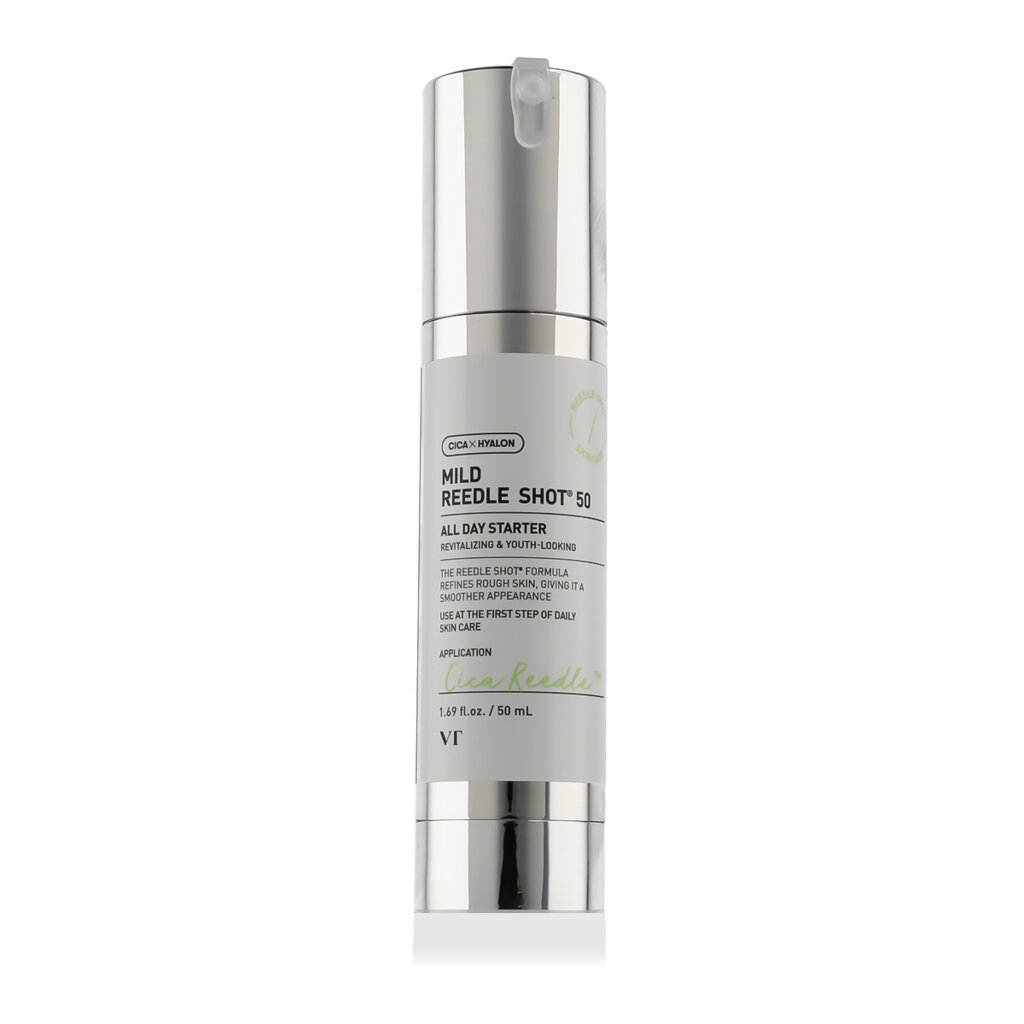 VT Cosmetics Reedle Shot 50 50 ml je vysoko účinné regeneračné sérum, ktoré využíva inovatívnu technológiu CICA Reedle™ - mikronosiče, ktoré pomáhajú hlbšiemu vstrebávaniu aktívnych zložiek do pokožky. Je určené na intenzívnu obnovu pleti, zlepšenie jej štruktúry a upokojenie podráždenia, pričom zachováva maximálnu jemnosť aj pre citlivú pleť. S Centella Asiatica, propolisom a kyselinou hyalurónovou poskytuje vyváženú starostlivosť o pleť vystavenú stresu, podráždeniu alebo známkam únavy.